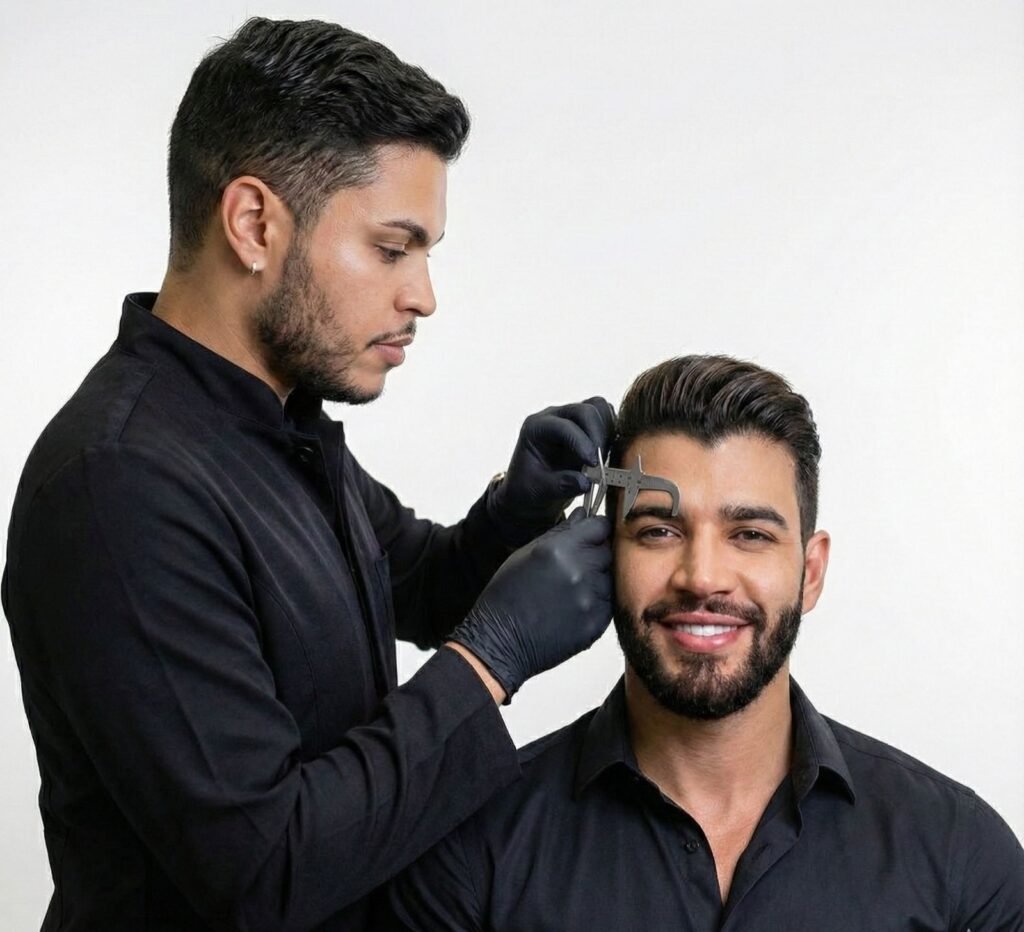 Nanopigmentação masculina desenvolvida para corrigir falhas e alinhar o desenho das sobrancelhas sem deixar aparência marcada ou artificial.